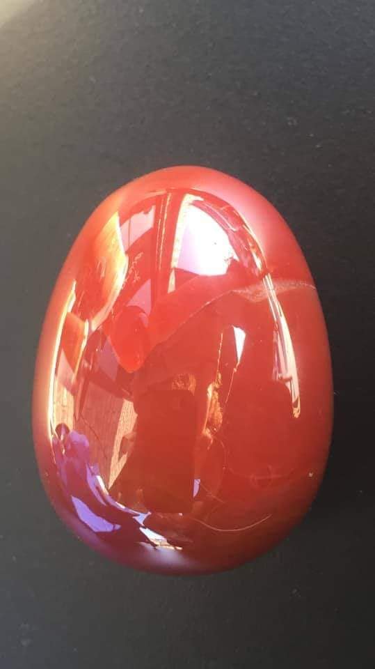 Carnelian egg For the gemstone egg collections. Carnelian is used for focusing, realization, and self-actualization, Carnelian stimulates the mind. Eggs are symbolic of new beginnings, the spark of creation. The egg is also a powerful symbol of fertility, purity and rebirth, used often in rituals to promote fertility and restore vitality. and to foresee the future. They also symbolize the meaning of growth, protection, resurrection.