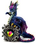 Dragons symbolize strength, courage and fortitude. An intriguing resin Dragon statue, grasping a multi colored crystal in his bold stance . Having detailed designs within the multi colored dragon itself, that make his scales and presence pop.
